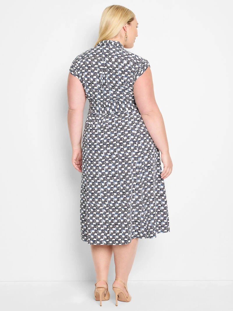 Your new go-to for workdays and warm-weather outings alike. Designed with a breezy summer silhouette, it balances structure and flow with a fit-and-flare shape and a removable belt to define the waist. Tab details at the sleeves add a refined touch, while the black-and-blue color palette keeps it timeless, from office hours to after-hours. Made with ECOVERO from LENZING, featuring with wood fibers harvested from sustainably managed forests.