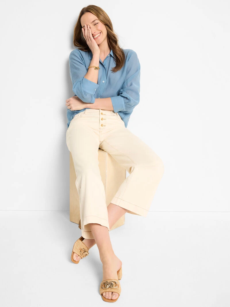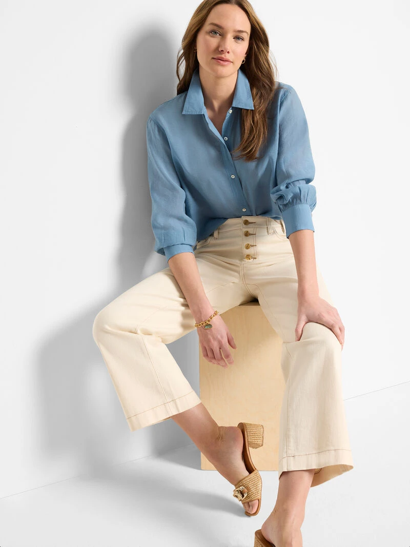 Just the thing for catching the breeze on warm nights, the Breeze Shirt is a texture-driven top with a luxe hand feel we simply can’t get enough of. We love the subtle ruching on the sleeve and the hint of sheer that makes for the perfect warm-weather layer. Mindfully Made from drapey LENZING Tencel, featuring fibers made from wood pulp harvested from sustainably managed forests.
