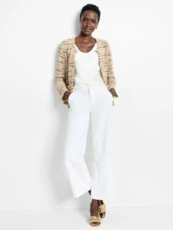 The Heat Clash Cardigan redefines chic layering with its soft yarns from our ICO(NIC) Fringe Mix and its unmistakable long silhouette. Designed as a longer jacket piece, it features novelty braiding along the seams and placket for a unique, elevated touch. Complete with a single hook-and-eye closure, flap pockets, and a styled V-neck, this midweight cardigan offers effortless polish and versatility. Sits slightly below the hip.