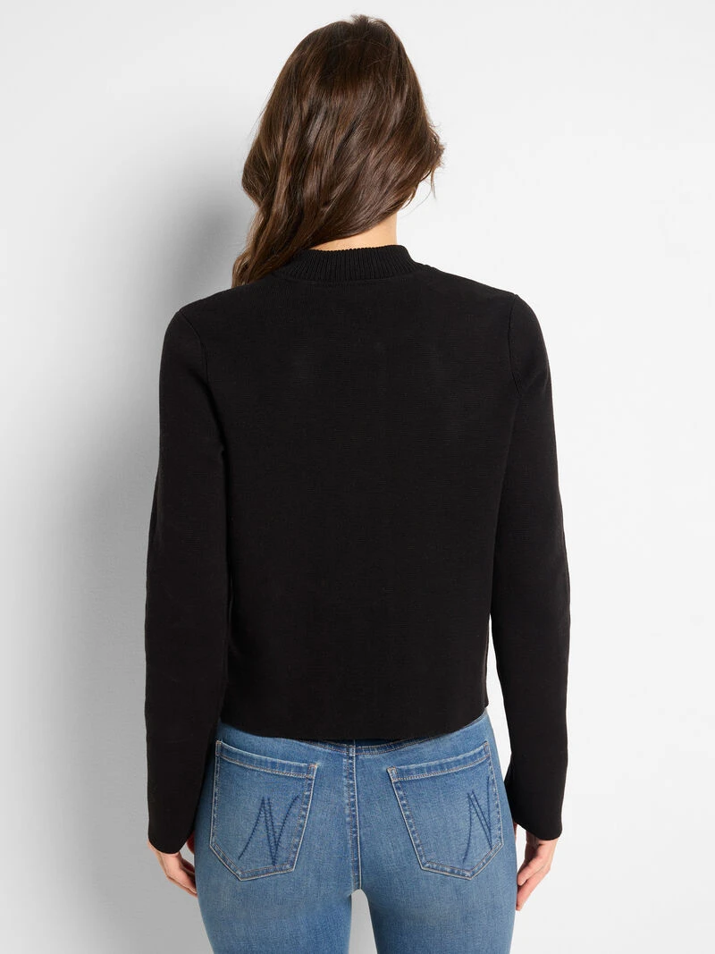Level up your layers. Blending modern style with anytime versatility and all day comfort, the Knit Bomber Jacket is the layer you can’t help but love. Crafted in a full Milano knit with rib trims, this modern must-have silhouette features a ribbed collar, functional welt pockets, and a full button front. Unlined and midweight, it’s perfect layered over dresses or paired with pants and denim for an elevated, effortless look.