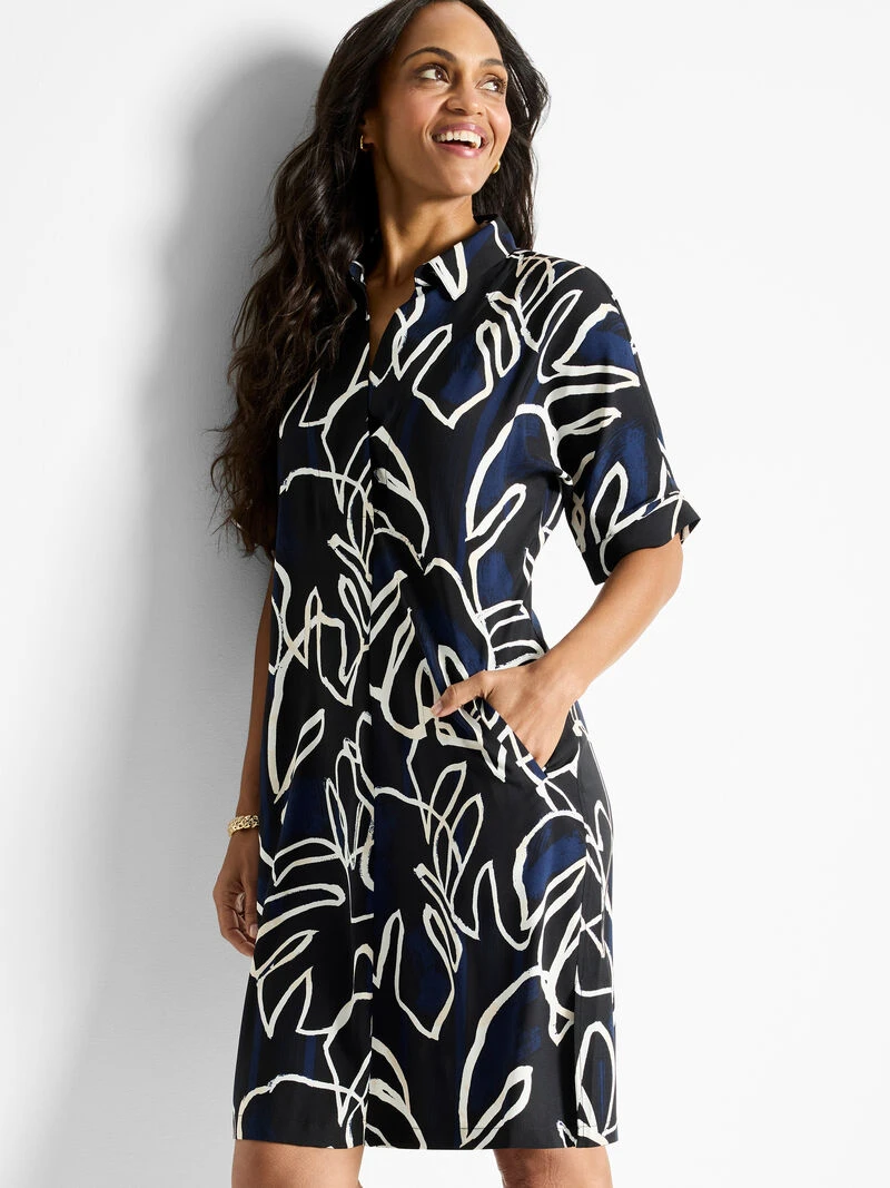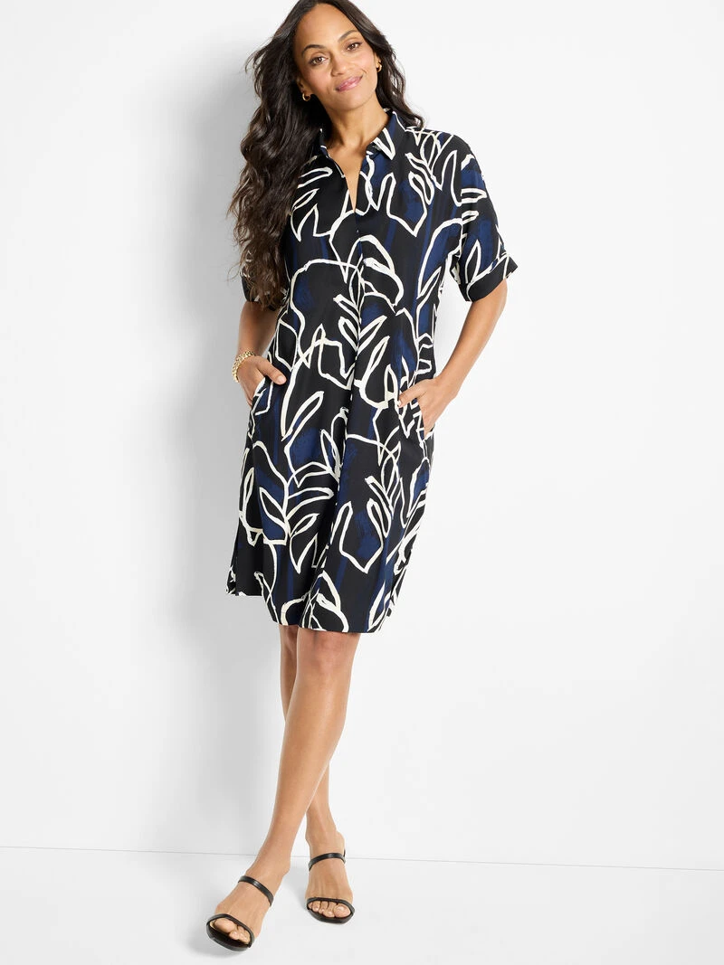 The Devon is a fan-favorite silhouette, beloved for its ease and commitment to chic vintage style. The body is clean and easy and designed to be relaxed: for a more secure fit order a size down. With short sleeves, a shirt collar and a hem that falls at the knee. Pockets, too!