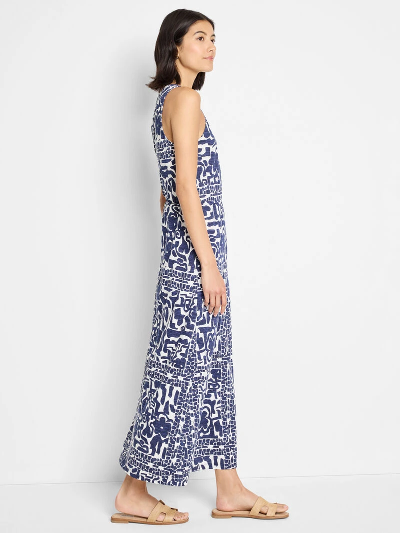 Embrace effortless style with the Floret Blues Knit Dress, a fitted tank dress that combines comfort with timeless elegance. Made from vintage-inspired knit fabric, this dress feels as soft as it looks, offering a flattering fit with just the right amount of stretch. The dramatic indigo pattern adds a bold yet refined touch. With a flattering round neck and sleeveless design, it falls just below the knee for a sophisticated, yet relaxed silhouette. Pull it over your head for easy wear, and pair it with a jacket or cardigan for a layered look that transitions seamlessly through the seasons.