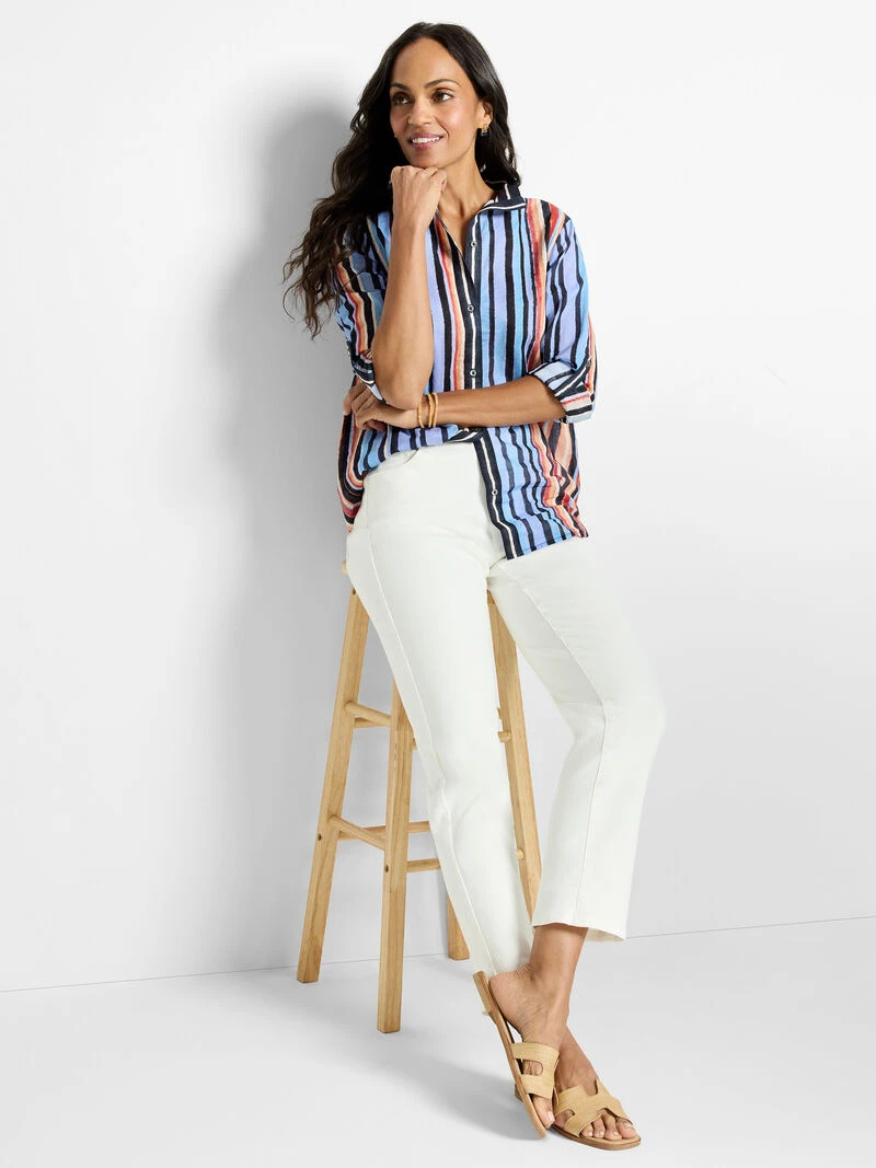 Our best-selling fan-favorite Cotton Lawn shirt, now in a new print designed to put a new spin on stripe. In a placed print with every stripe put exactly where it’s meant to be, including a reversed horizontal stripe detail on the cuff. Mindfully Made from 100% cotton sourced via the world’s largest cotton sustainability program.