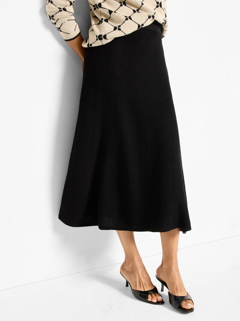 The timeless texture of a sweater, the femininity and fun of a skirt: our best-ever knit skirt to take dress season lasts past labor day. Pair the textured knit (with a surprisingly drapey feel) with the matching sweater for a simple, sophisticated set. We designed this silo to be effortless: pull-on and all-day comfy with a hem that falls to a mid-calf midi length. Mindfully Made using cotton from the world’s largest sustainability program. Mindfully Made from fully fashioned knitwear.