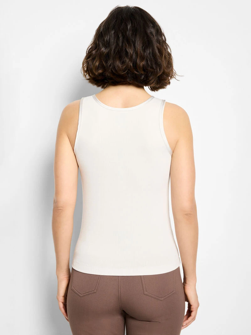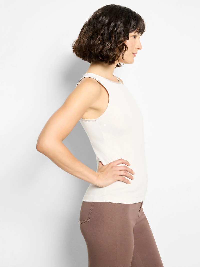 A classic tank with premium trim, upgraded with our subtle NIC+ZOE twists and superior construction. Thick straps to cover any other straps underneath, ribbed detailing, and a causal, breathable fit make her more than your average layering tank.